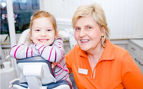 Eltern sind die wichtigsten Vorbilder und Bezugspersonen für ihr Kind. Die Mithilfe von Eltern ist daher besonders wichtig für einen erfolgreichen und angstfreien Zahnarztbesuch. Eine Möglichkeit ist, dass Eltern die Behandlung Ihren Kindern vormachen, d. h. das Elternteil setzt sich als Vorbild zuerst auf den Behandlungsstuhl.